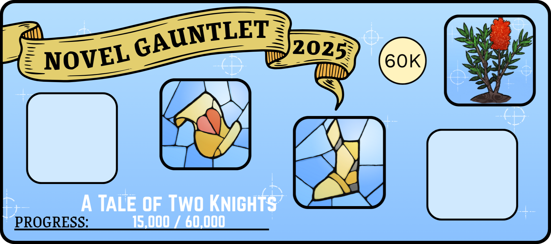 Let us know how your project is going throughout the month so we can cheer you on! Use the tag #NovelGauntlet or tag @NovelGauntlet.com on Bluesky. And don’t forget to snag your Gauntlet project and achievement badges!